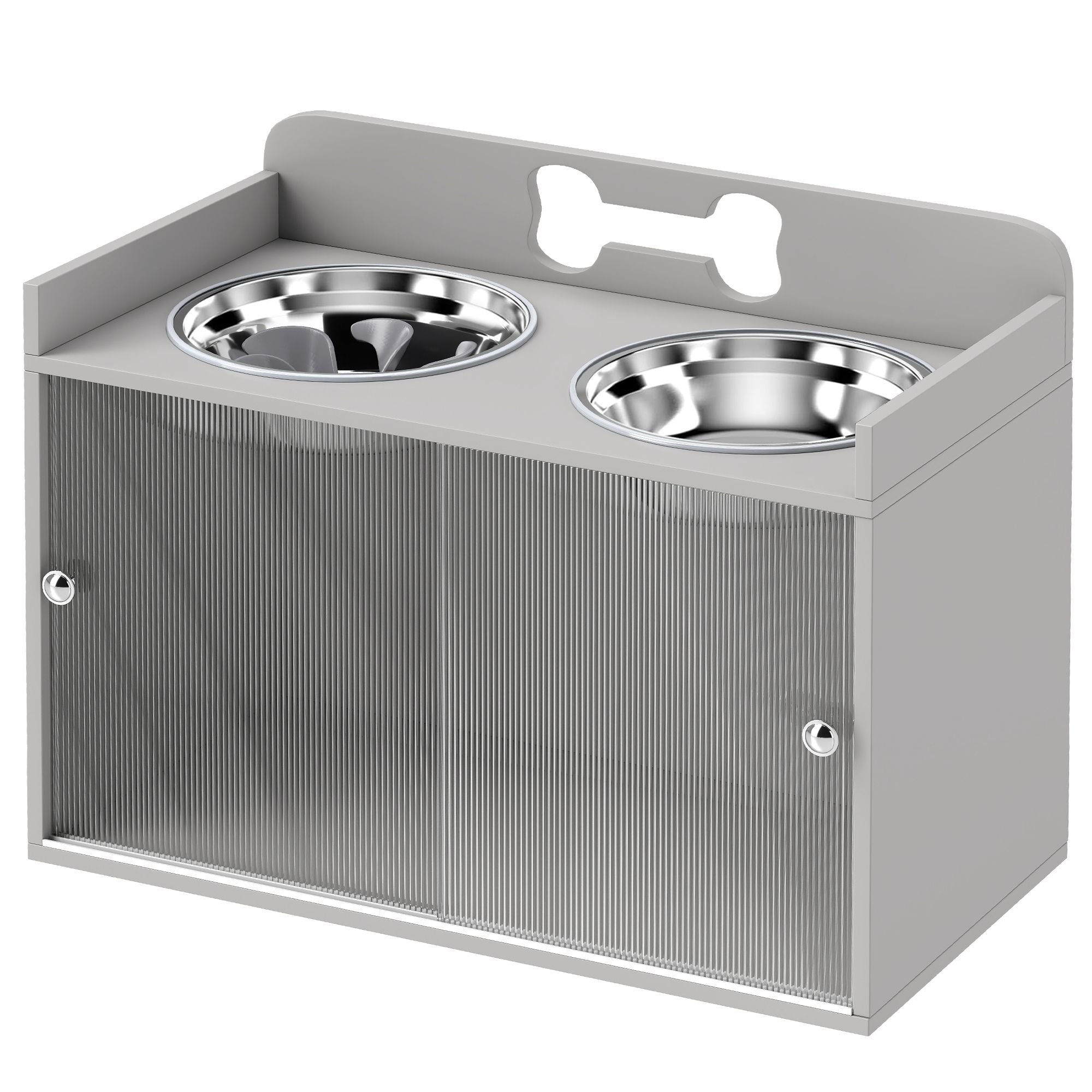 Home > Elevated Dog Bowls with Storage, Raised Dog Bowl Stand with 2 Stainless Steel Bowl for Large Dogs, Gray