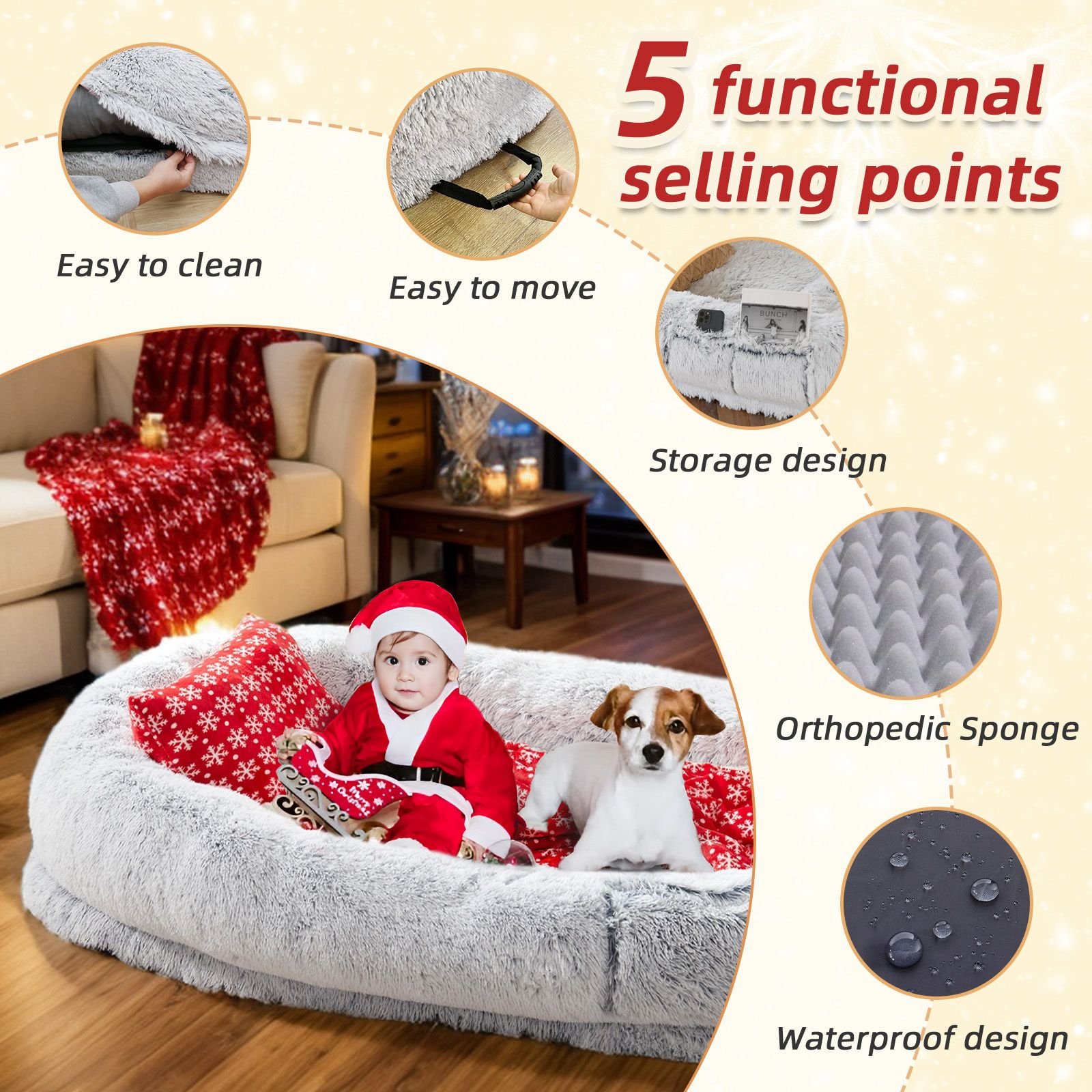SOFT & SUPPORTIVE FOR COMFORT - Our dog bed for humans features a faux fur plush surface for a soft, cozy feel, while the high-density sponge filling provides support, making it ideal for both people and pets to snuggle and unwind