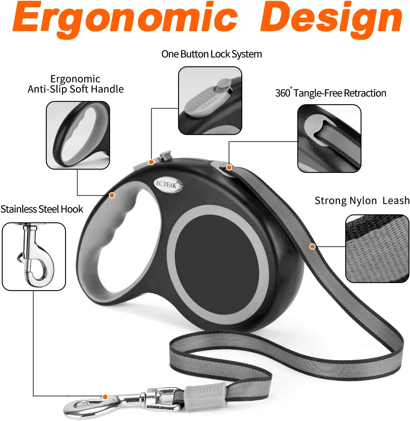 Retractable Dog Leash; Dog Walking Leash for Medium Large Dogs up to 110lbs; One Button Break & Lock ; Heavy Duty No Tangle