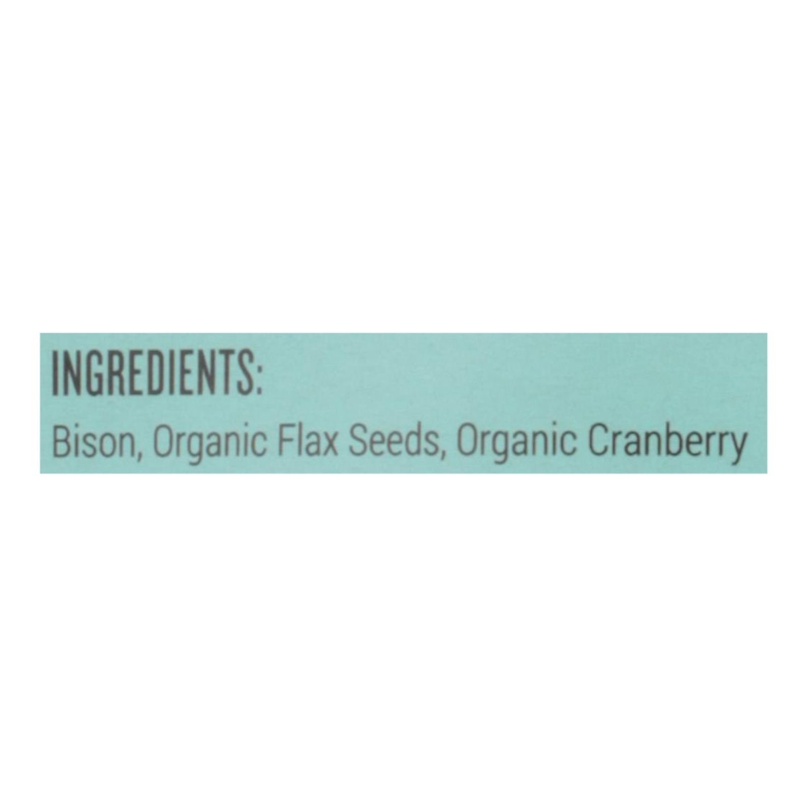 ingredients : bison;organic flax seeds;organic cranberry
